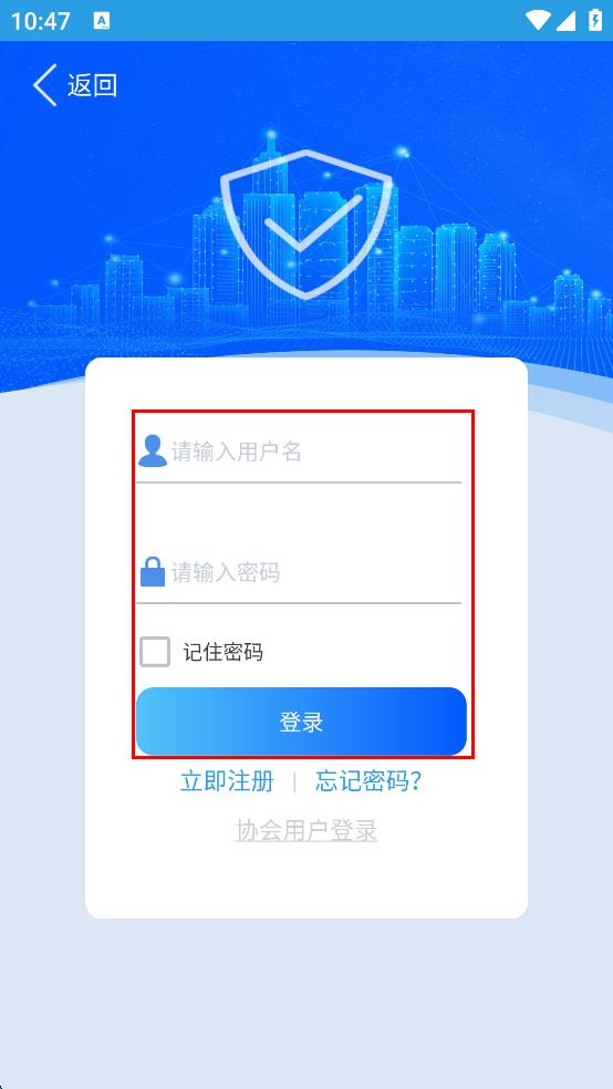 4、在登錄注冊頁面,先在“請輸入用戶名”輸入框中輸入用戶名,接著在“請輸入密碼”輸入框中輸入密碼,最后點擊“登錄”按鈕,完成登錄操作。