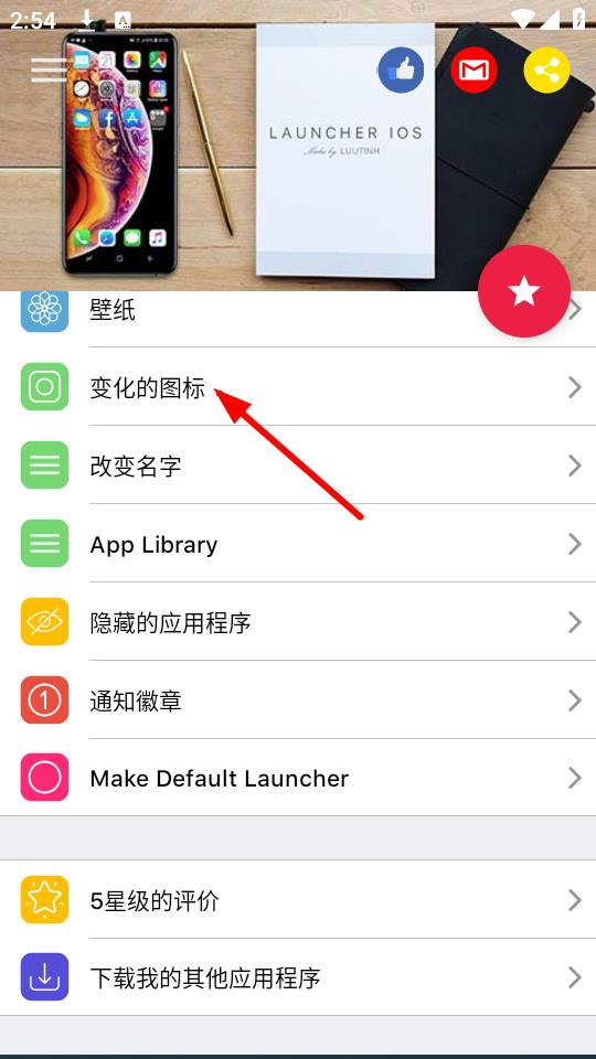 1、打開ios launcher15,點(diǎn)變化的圖標(biāo)改應(yīng)用圖標(biāo)樣式。
