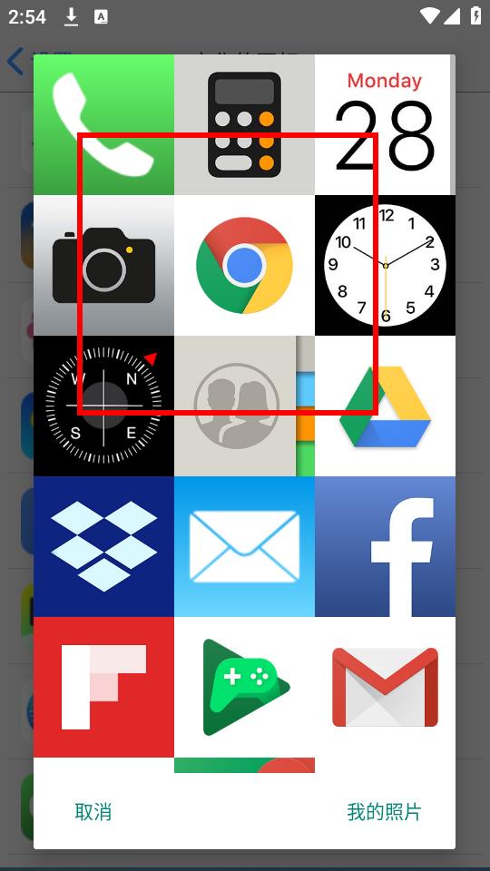 2、選目標(biāo)應(yīng)用點(diǎn)更換按鈕,可從提供圖標(biāo)或我的照片選。