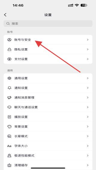 2、進(jìn)入設(shè)置頁面后,用戶需點(diǎn)擊賬號與安全的按鈕。