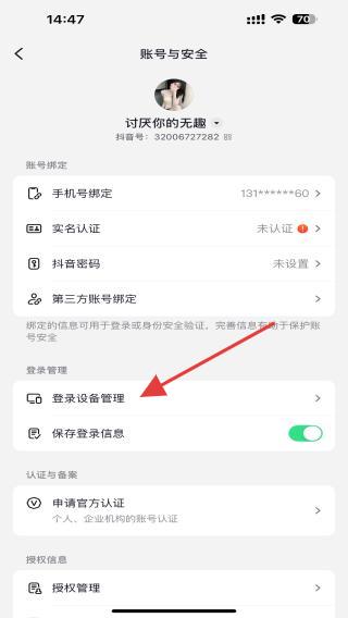 4、進(jìn)入登錄設(shè)備管理界面后,即可查看抖音賬號(hào)所有曾登錄過(guò)的設(shè)備列表。