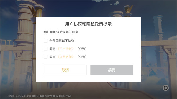 2、允許用戶協(xié)議和隱私政策提示等,點(diǎn)擊接受繼續(xù)下一步。