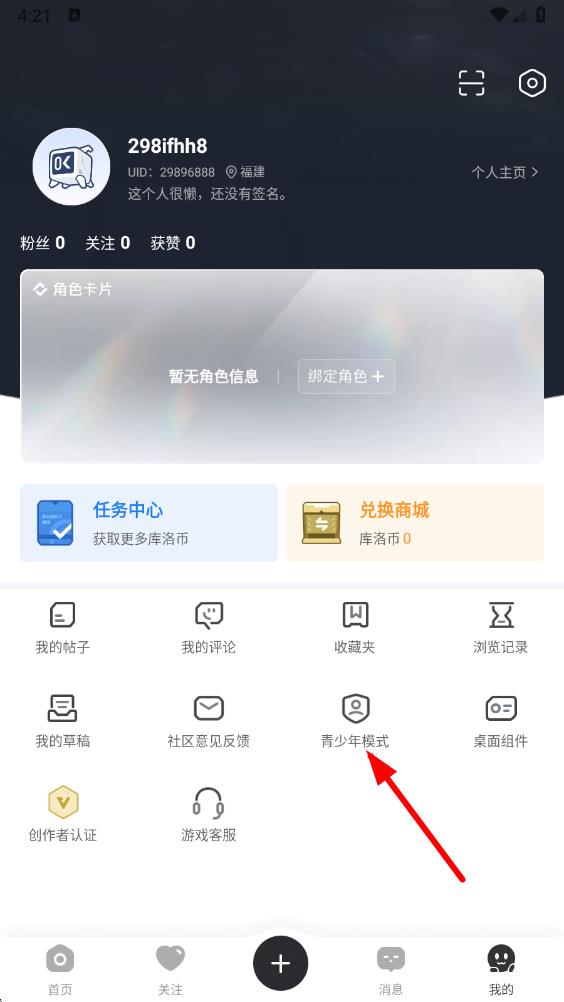 2、在個人界面中,找到并點(diǎn)擊青少年模式選項,進(jìn)入青少年模式頁面。