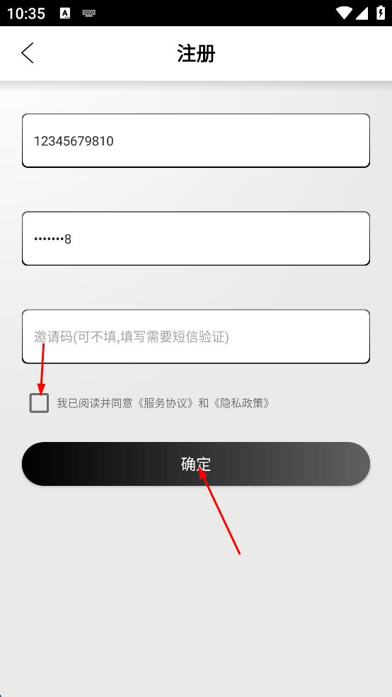 4、勾選我已閱讀并同意服務(wù)協(xié)議和隱私政策,最后點(diǎn)擊“確定”,即可完成注冊(cè)。
