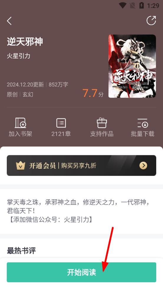 1、打開熊貓看書APP,找到想要閱讀的書籍如逆天邪神,點(diǎn)擊開始閱讀進(jìn)入閱讀界面。