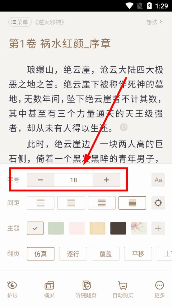 3、在閱讀設(shè)置頁面里,找到字號選項,通過點(diǎn)擊按鈕,即可調(diào)整字體大小到合適的尺寸。