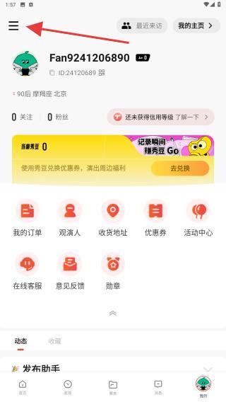 2、進入我的頁面內(nèi),點擊左上角三個橫線的按鈕。