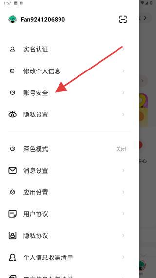 3、在左側(cè)彈出的菜單欄中,找到并點擊賬號安全的功能按鈕。