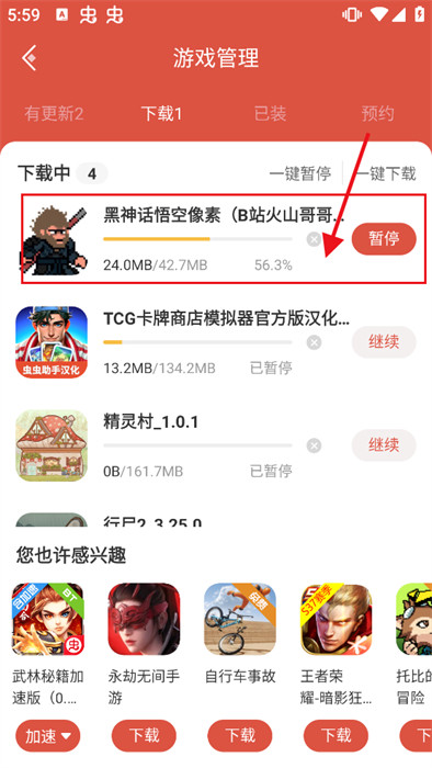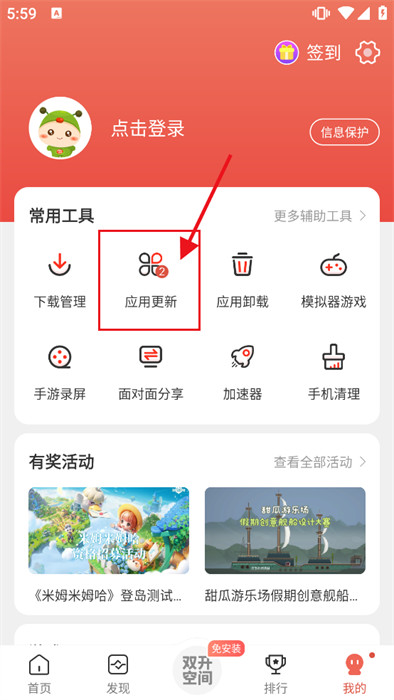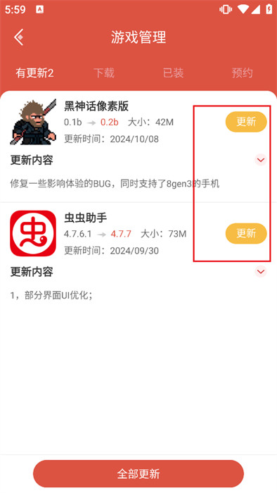 2、隨后,找到頁面【游戲更新】,查看當前設備內(nèi)需要更新的游戲資源;