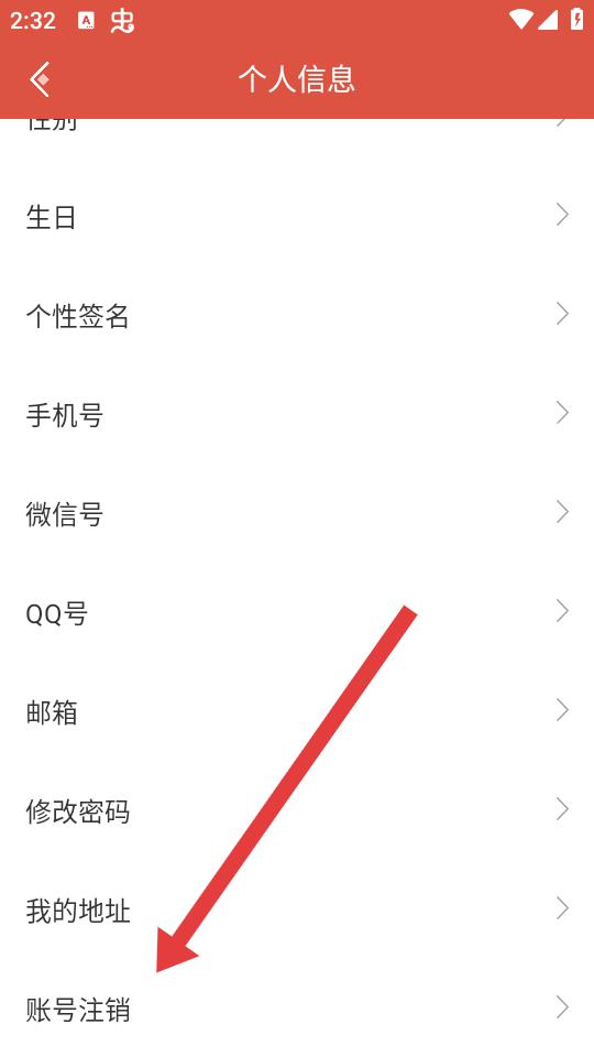 2、在個人信息的頁面中,需要找到賬號注銷的選項并點擊,進入賬號注銷申請頁面。