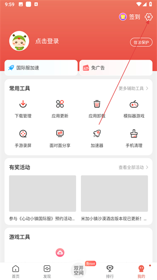 1、打開蟲蟲助手APP,在個人中心頁面點擊齒輪形狀的設置按鈕。