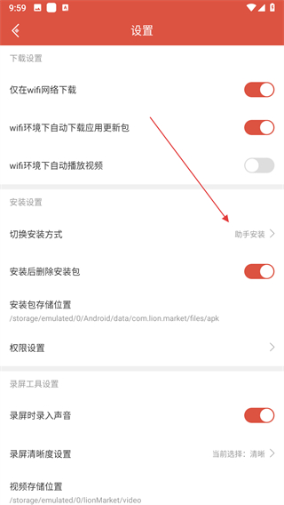 3、進入設置頁面后,點擊切換安裝方式選項。