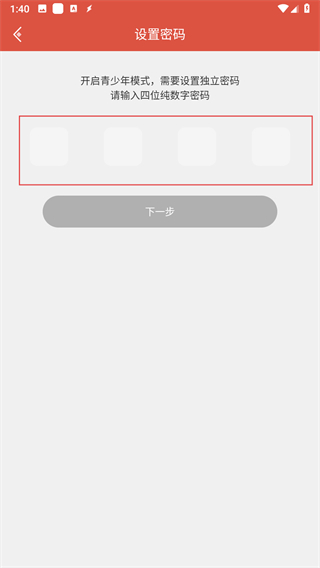 5、在設置密碼頁面輸入四位純數(shù)字密碼,即可開啟青少年模式。