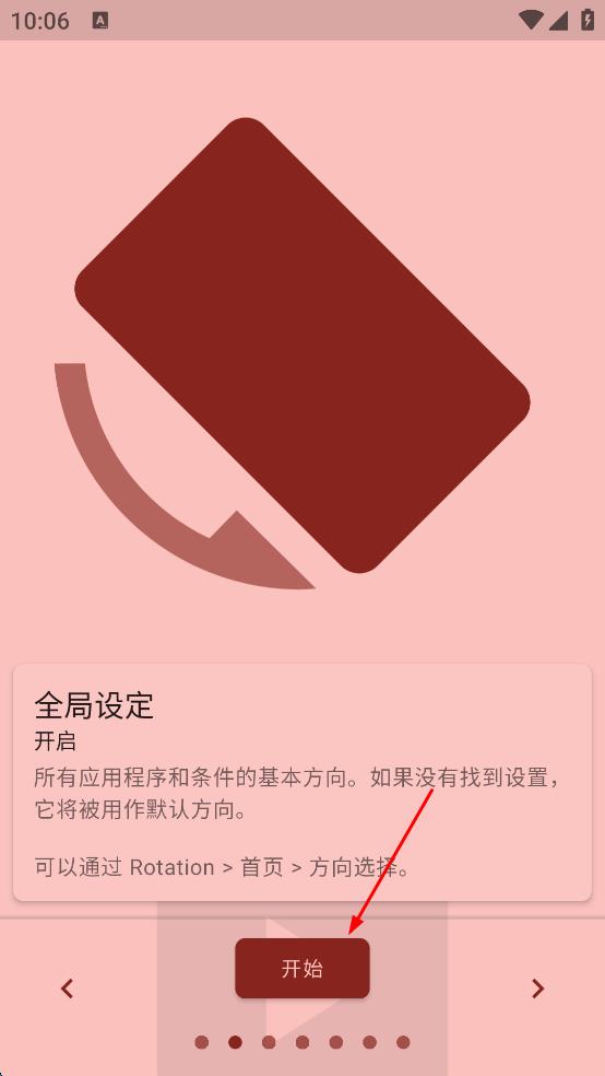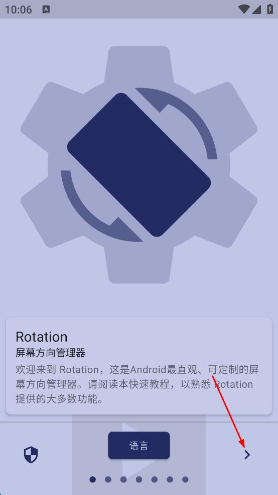 1、打開Rotation軟件,進(jìn)入軟件介紹頁(yè)面,查看相關(guān)功能介紹后,點(diǎn)擊頁(yè)面右下方的箭頭按鈕,進(jìn)入下一個(gè)頁(yè)面。