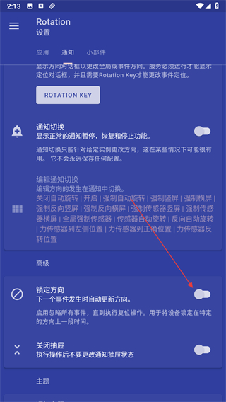 4、找到鎖定方向選項(xiàng),開啟其開關(guān)即可。