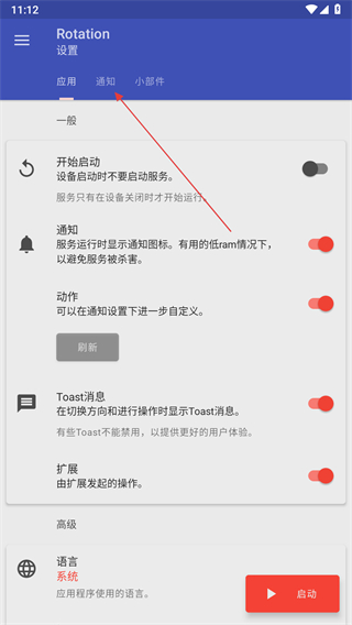 4、權(quán)限申請(qǐng)完成后,會(huì)彈出全局設(shè)定界面,在該界面中,可根據(jù)需求選擇合適的屏幕方向等相關(guān)設(shè)置。
