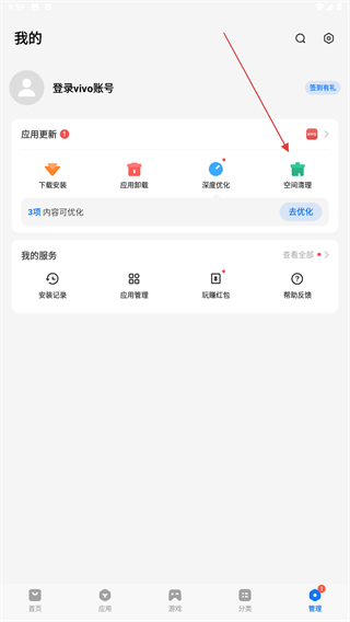 3、在我的頁(yè)面內(nèi),點(diǎn)擊空間清理的功能按鈕。