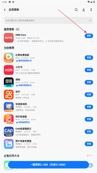 4、進(jìn)入應(yīng)用更新的頁面內(nèi),會(huì)顯示可更新的軟件,點(diǎn)擊右側(cè)更新的按鈕即可。