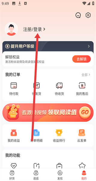 3、個(gè)人中心頁(yè)面點(diǎn)擊“注冊(cè)/登錄”,進(jìn)入賬號(hào)登錄頁(yè)面。