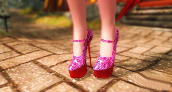 上古卷軸5:天際 寶石高跟鞋整合MOD;此MOD包括了獨(dú)立寶石高跟,蛇皮高跟,金砂玻璃高跟三種非常精美漂亮的高跟鞋