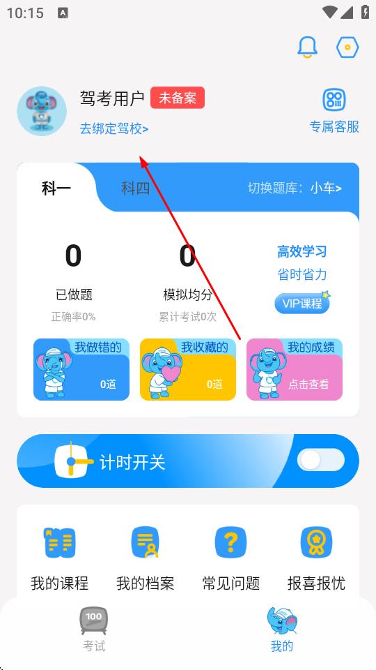 2、在我的頁(yè)面中,點(diǎn)擊去綁定駕校選項(xiàng)。