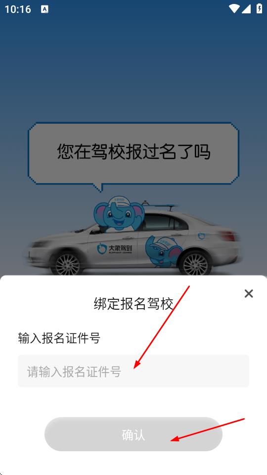 4、在綁定報(bào)名駕校界面,輸入報(bào)名證件號(hào),點(diǎn)擊確認(rèn)按鈕,完成駕校綁定。