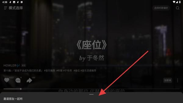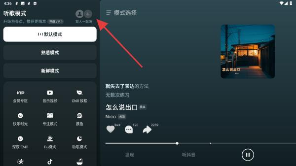 2、在彈出的聽歌模式側(cè)邊欄中,點擊帶有+標(biāo)識的加入一起聽按鈕。