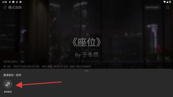 4、滑動后,在邀請朋友一起聽的下方,點擊復(fù)制鏈接的功能按鈕即可邀請朋友一同同步聽歌。