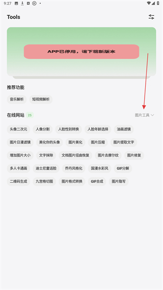 1、啟動(dòng)卡音的應(yīng)用APP,進(jìn)入首頁(yè)點(diǎn)擊右側(cè)圖片工具的按鈕。