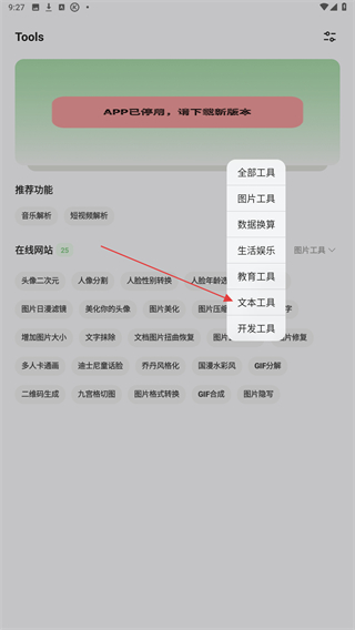 2、點(diǎn)擊后展開工具菜單欄,找到并點(diǎn)擊文本工具的按鈕。