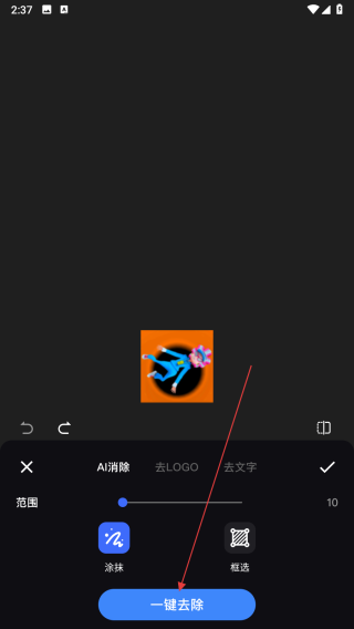 4、圖片上傳后,點(diǎn)擊一鍵去除按鈕,水印云會(huì)自動(dòng)對(duì)圖片進(jìn)行AI消除處理。