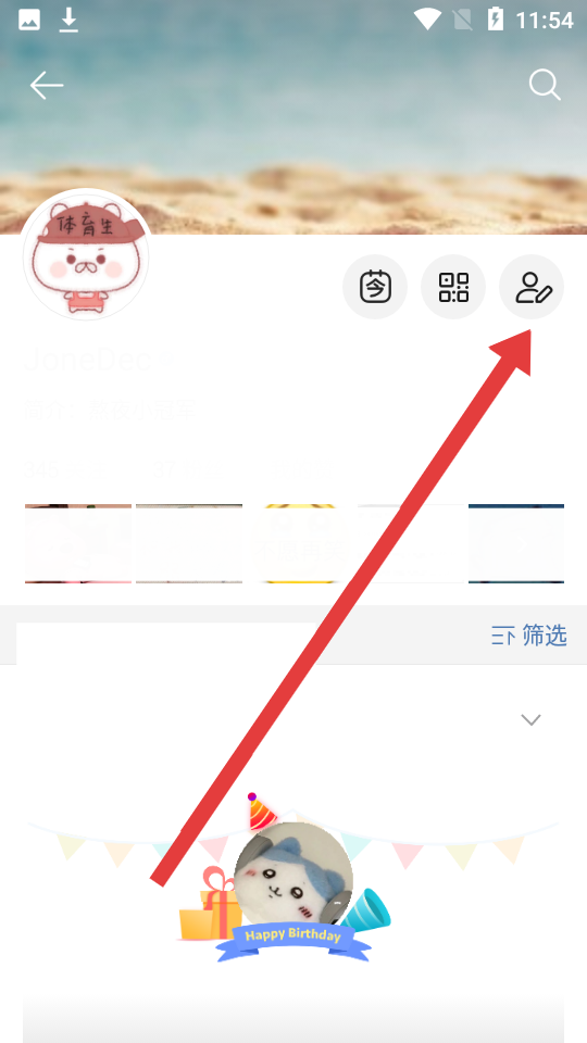 1、打開微博精簡版進入個人主頁,點擊右上方的編輯個人資料圖標。