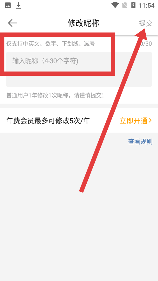 3、在修改昵稱界面輸入完成新的昵稱之后,點擊提交即可完成修改。