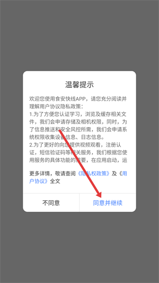 1、打開app,在彈出的頁面中點擊同意并繼續(xù)。