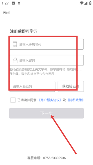 4、在注冊頁面輸入信息,點擊下一步即可完成登錄。