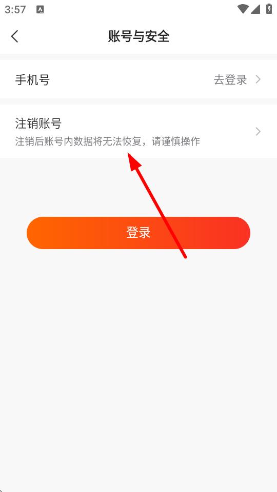 3、進(jìn)入賬號(hào)與安全頁(yè)面后,點(diǎn)擊注銷(xiāo)賬號(hào)選項(xiàng),該選項(xiàng)下方提示注銷(xiāo)后賬號(hào)內(nèi)數(shù)據(jù)將無(wú)法恢復(fù),請(qǐng)謹(jǐn)慎操作。