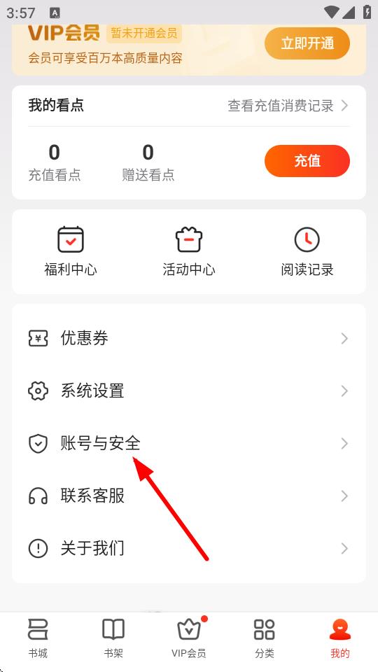 2、在我的頁(yè)面中,找到并點(diǎn)擊賬號(hào)與安全選項(xiàng)。