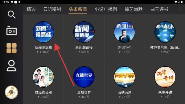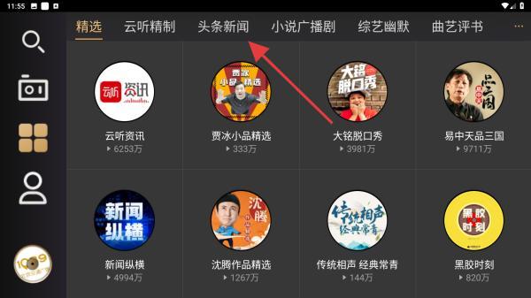 3、在頭條新聞下,選擇并點擊你要聽的新聞類型。