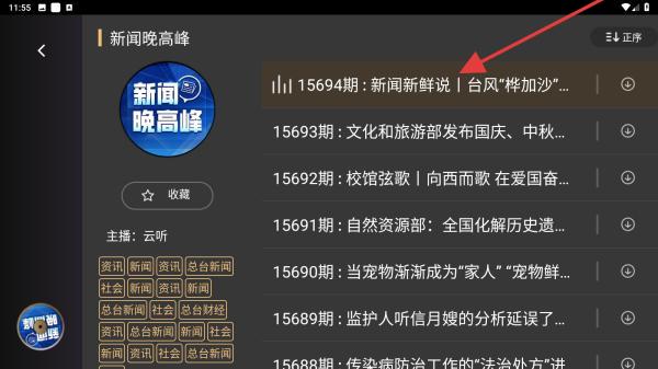 4、進入該頁面內(nèi),選擇要聽的新聞廣播內(nèi)容后點擊即可開始聽。