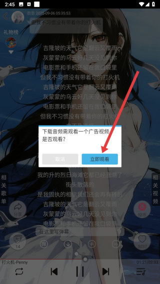 4、下載音頻需觀看廣告,點(diǎn)擊下方立即觀看按鈕,在完成觀看后即可下載。