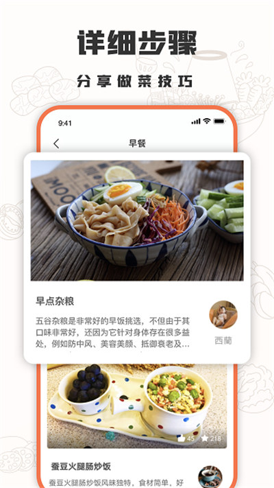 3、還可以再社群分享自己非常推薦的菜譜,分享自己的愛好,也可以看別人分享的食品,持續(xù)學(xué)習(xí)