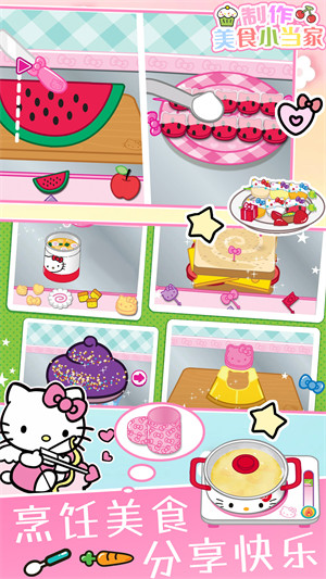 制作美食小當家游戲是一款美食制作主題的游戲,玩家將在游戲中化身為一只凱蒂貓,在游戲中制作各種精致的美食便當,游戲中的便當食材是很多的,玩家可以自由的選擇自己需要制作什么樣的美食,自由的進行搭配,選擇最好的食材。