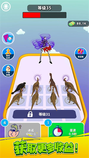 【不斷解鎖】多種恐龍等待你去解鎖并不斷地合成它們就能進(jìn)化出全新的生物,為了得到更高一級的恐龍,融合在一起。