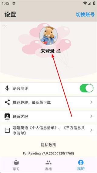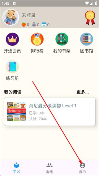 1、打開趣趣英語app,點(diǎn)擊底部導(dǎo)航欄中我的選項(xiàng)。