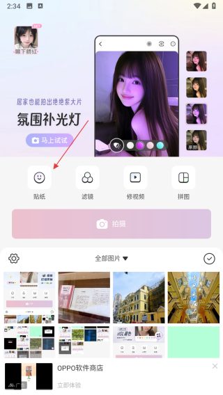 1、打開日雜相機APP,點擊貼紙功能按鈕,進入圖片選擇頁面。