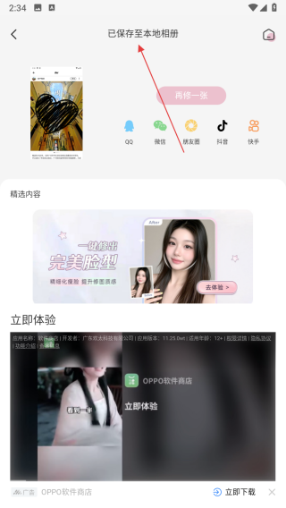 5、保存之后,將顯示添加貼紙的圖片已保存至本地相冊,下方還可以分享圖片到其他社交軟件。