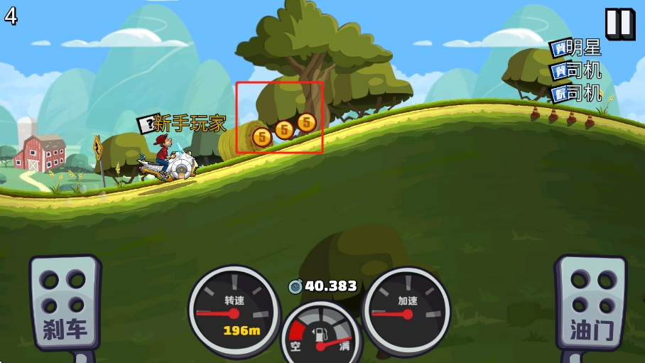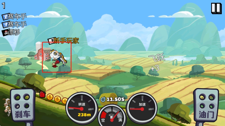 3、進(jìn)入游戲后可以看到遇到坡度大的地方可以旋轉(zhuǎn),通過剎車和油門進(jìn)行控制車輛的平衡;