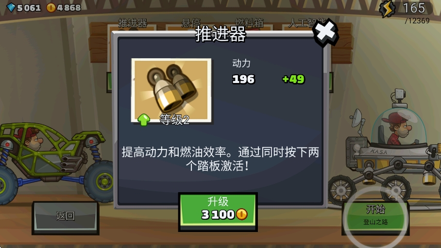 2、可以看到推進(jìn)器的升級后可以增加自己的動力,提高動力和燃油效率并需要同時(shí)按下兩個(gè)踏板激活;