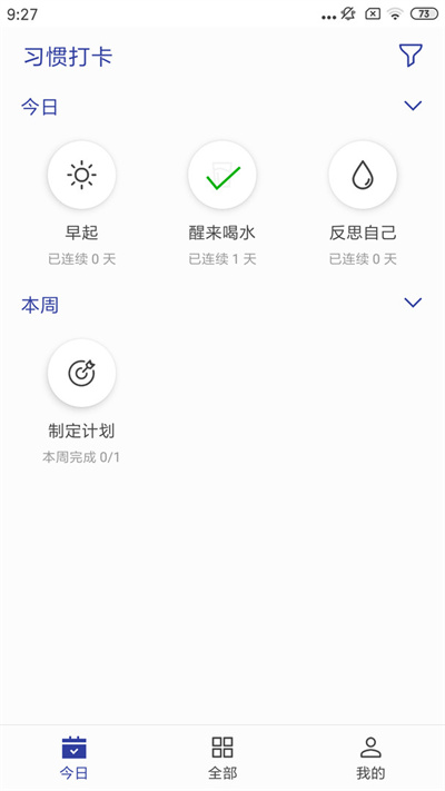 3、整個(gè)軟件界面十分簡(jiǎn)單,采用的是簡(jiǎn)單圖表的風(fēng)格讓用戶能更加清楚的看到每天的習(xí)慣信息。