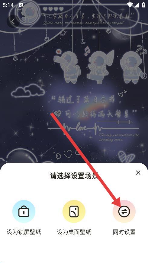 4、在彈出的請(qǐng)選擇設(shè)置場(chǎng)景選項(xiàng)框中,根同時(shí)設(shè)置即可完成壁紙?jiān)O(shè)置操作。